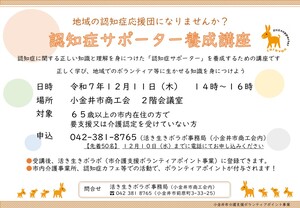 認知症に関する正しい知識と理解を身につけた「認知症サポーター」を養成するための講座です。