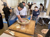 令和7年9月7日(日曜)に、令和7年度うどん打ち体験会・懇親会を婦人会館で開催しました。当日は中山谷青壮年会さんに講師としておいでいただき、外国籍の方(中国、台湾、香港、アメリカ、ウクライナ、ロシア、インドネシア)を含む20人がうどん作りを体験し、作ったうどんを参加者全員で食べて交流しました。