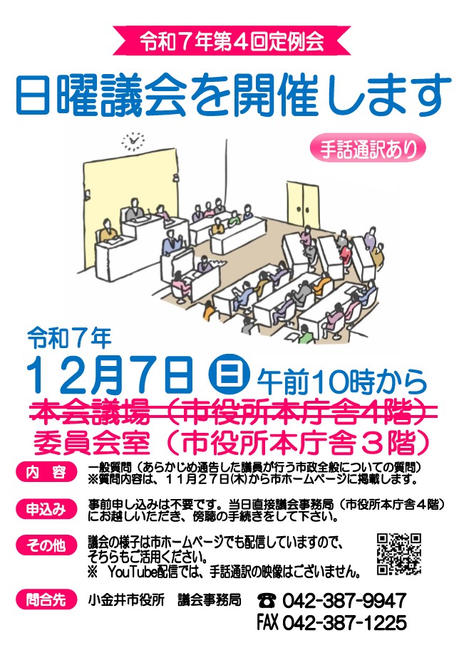 令和7年第4回定例会日曜議会を開催します