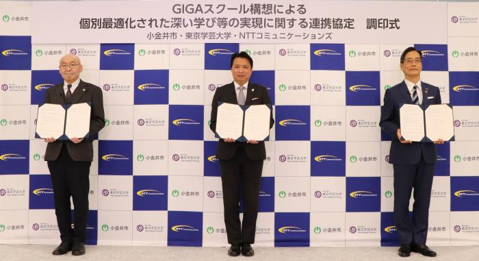 小金井市、国立大学法人東京学芸大学(以下「東京学芸大学」といいます。)、NTTコミュニケーションズ株式会社(以下「NTT Com」といいます。)は、「GIGAスクール構想による個別最適化された深い学び等の実現に関する連携協定」(以下「本協定」といいます。)を令和3(2021)年4月20日に締結しました。