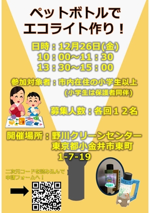 冬休みシーズン到来、ペットボトルを再利用して一緒にエコライトを作りませんか?