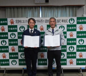 令和7年12月18日、市と株式会社 双葉苑(小金井市中町)は、災害時における人員及び車両等の提供に関する協定を下記のとおり締結しました。大規模な地震災害、風水害、その他の災害時には、小金井市地域防災計画に基づく災害時における民間協力体制の一環として、倒木・がれき等の撤去や物資輸送等の支援を受けることについて協定を結んだものです。 株式会社 双葉苑は、造園・施工・管理を主とする企業です。災害時には、倒木・がれき等の撤去や物資輸送等をおこなっていただくことになります。このことにより道路啓開や避難所等への物資の輸送などが速やかにできるようになるなど、災害時の環境の改善に寄与することが期待できると考えております。