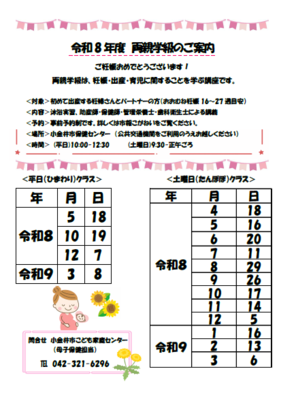 注記:妊娠週数は、概ね16週から27週を目安にご参加ください。それ以外の週数でもご参加可能です。