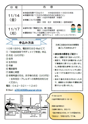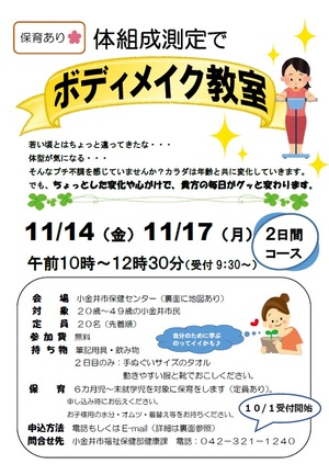 保育つき 体組成測定でボディメイク教室(2日間コース)受講者募集!