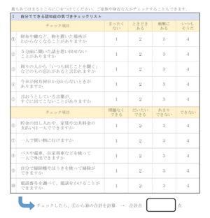 まずはご自宅で同封の(2)検診問診票「自分でできる認知症のチェックリスト」を実施してください。