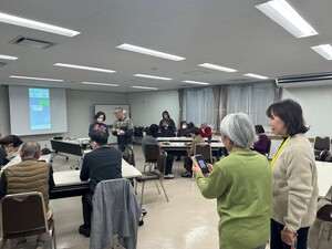 本講座では、LINEを中心に、二次元コードの読み取り方、位置情報の送信、スクリーンショット、LINE通話、ビデオ通話などの方法を学びました。二つのボタンを同時に押すスクリーンショットは、苦戦された方が多くいらっしゃいました。しかし、何度も練習するうちにコツをつかみ、「カシャ」という音が聞こえ、会場では歓声がわく場面もあり楽しく学べる時間となりました。
