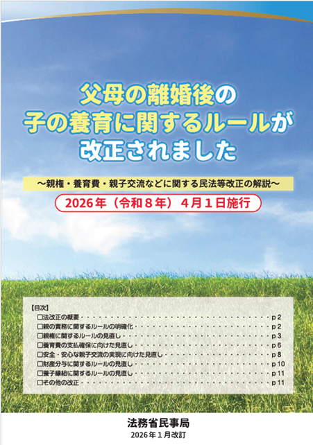 法務省パンフレット表紙「父母の離婚後の子の養育に関するルールが改正されました」