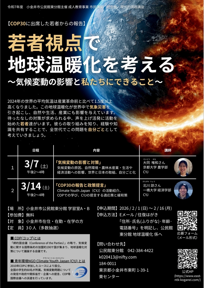 公民館東分館 市民講座「若者視点で地球温暖化を考える―気候変動の影響と私たちにできること―」を開催します