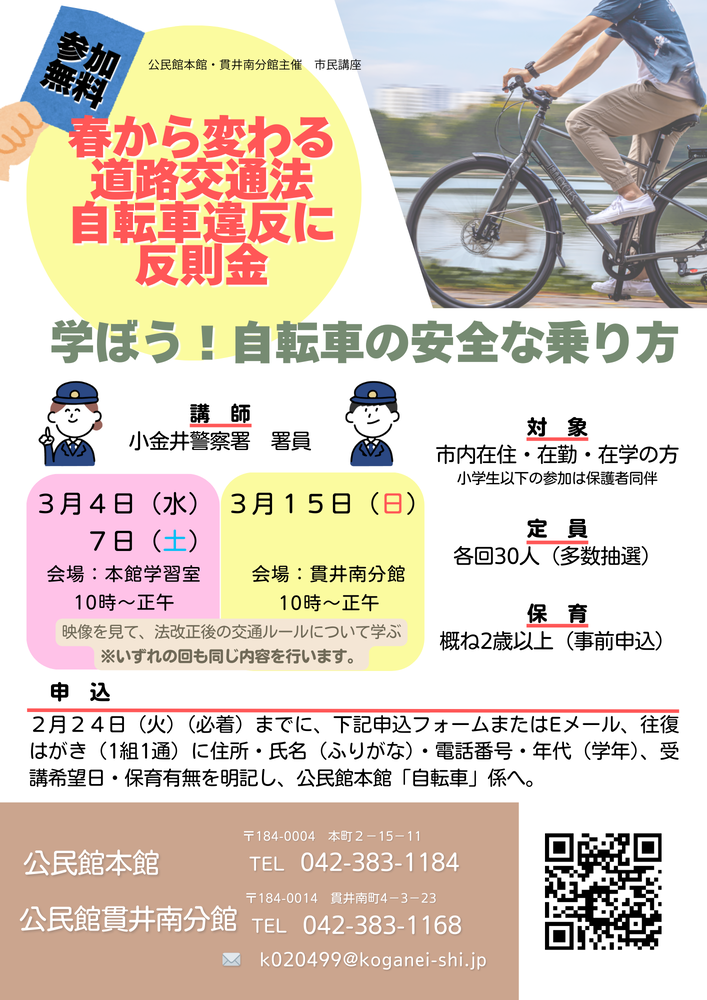 公民館 市民講座「春から変わる道路交通法 学ぼう!自転車の安全な乗り方」を開催します