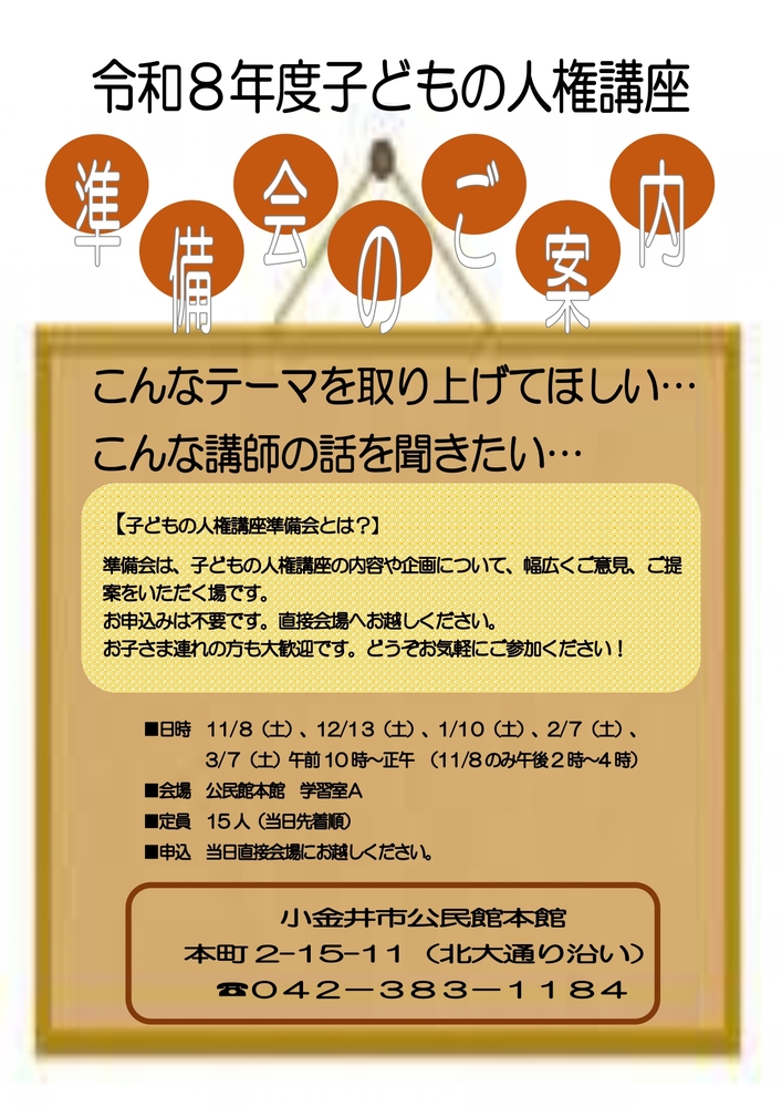令和8年度子どもの人権講座準備会を開催します