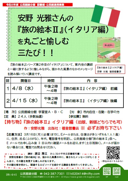 公民館緑分館 図書館・公民館連携事業「安野光雅さんの「旅の絵本2」(イタリア編)を丸ごと愉しむ 三たび!!」を開催します