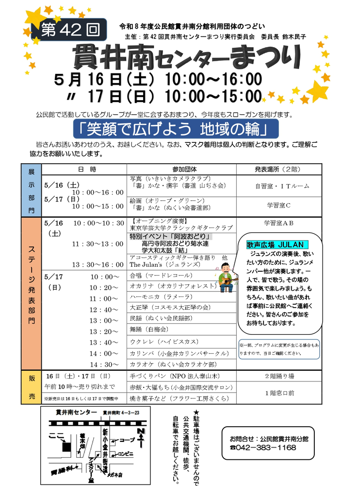 詳細は、「第42回貫井南センターまつりチラシ」をご覧ください。