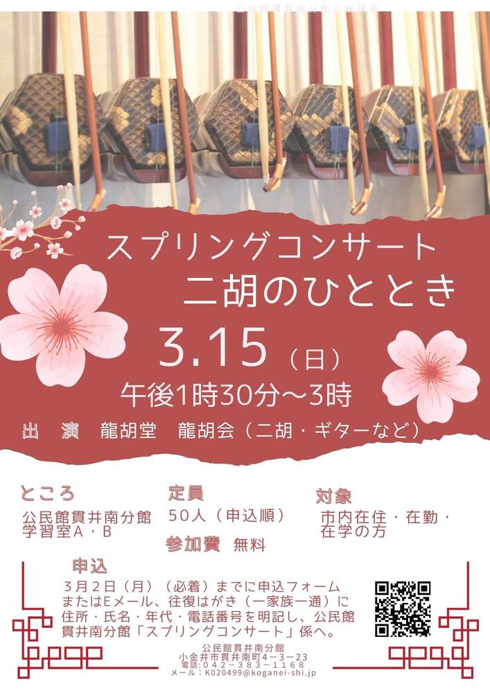 貫井南分館主催 音楽鑑賞のつどい「スプリングコンサート 二胡のひととき」を開催します