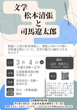 公民館貫井南分館主催 市民講座「文学 松本清張と司馬遼太郎」