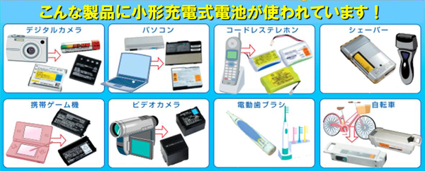 小型充電式電池は下図のような製品に使われています。