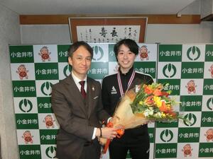 市長より花束を贈呈