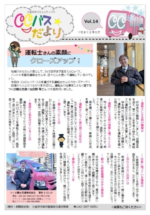 CoCoバスだよりは、CoCoバス車内、市の出先機関、回数券販売所で配布しています。今後もCoCoバスに関する様々な情報を随時皆さまにお届けします。どうぞお楽しみに。