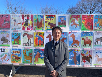 東京都から移管して46回目となるこの大会では、毎年たこ原画を募集しており、今年は88作品の中から小金井第二小学校6年生の作品が選ばれました。馬が力強く躍動する姿を描いた素敵な作品です。