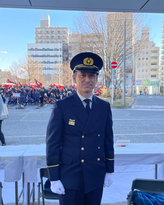 武蔵小金井駅南口ロータリーにて、小金井市消防団出初式を行いました。