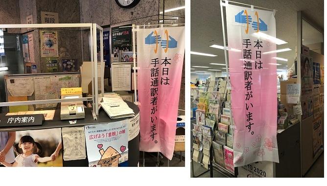 市役所庁舎内での手続きや相談等において、手話通訳が必要な方は、第二庁舎2階自立生活支援課窓口までお気軽にお申し出ください。