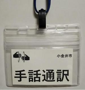手話通訳者はこの名札を着用しています。