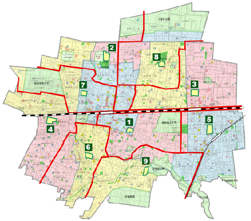 | 8.緑 小学校 | 関野町一丁目~二丁目 全域 |
