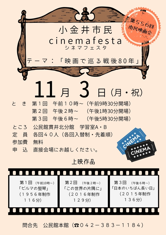 市民映画会は、「小金井市民CinemaFesta(シネマフェスタ)」に生まれ変わります。