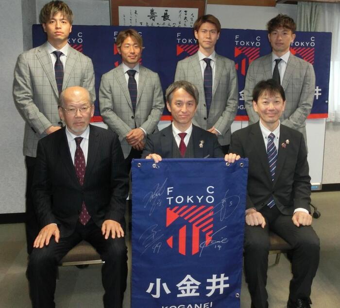 令和7年12月9日(火曜)にFC東京の白井 康介選手、橋本 拳人選手、森重 真人選手、山下 敬大選手が市役所を訪れ、2025年シーズン報告を行いました。