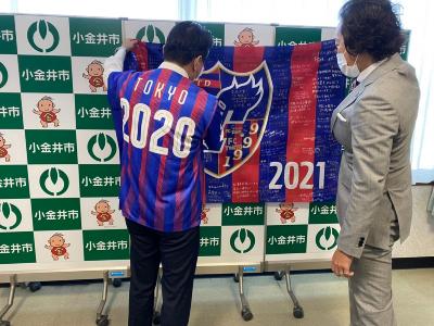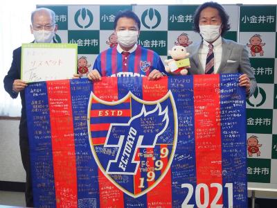 令和3年2月27日(土曜)・令和3年2月28日(日曜)に小金井 宮地楽器ホールにて実施したFC東京応援企画で小金井市の皆様からいただいた応援メッセージを令和3年3月10日(水曜)に、FC東京 石川 直宏クラブコミュニケーター(CC)にお届けしました。