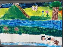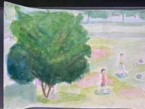 | 入選 | 武蔵野公園(原っぱ)の午後 | 今井 菜摘 | 南小 | 5年 |