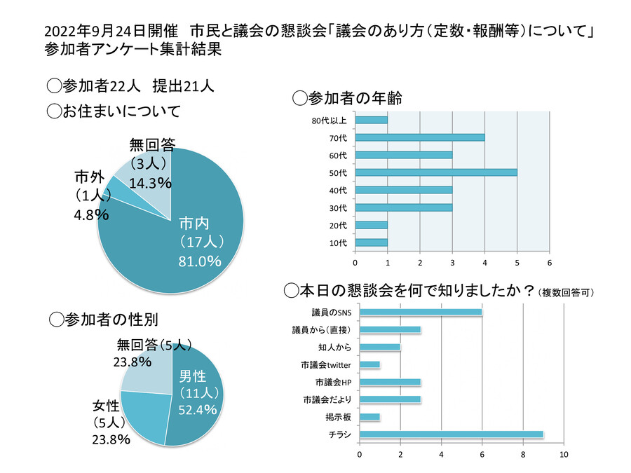 市民と議会の懇談会「議会のあり方(定数・報酬等)について」参加者アンケート集計結果(令和4年9月実施)