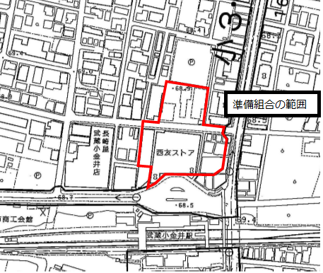 武蔵小金井駅北口駅前東地区市街地再開発準備組合の区域が変更されました